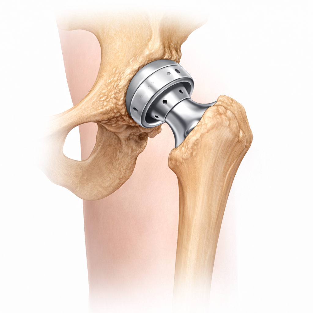 Hip replacement surgery is a medical procedure where damaged hip joint surfaces are removed and replaced with artificial implants to relieve chronic pain, restore smooth movement, and improve overall mobility and quality of life.